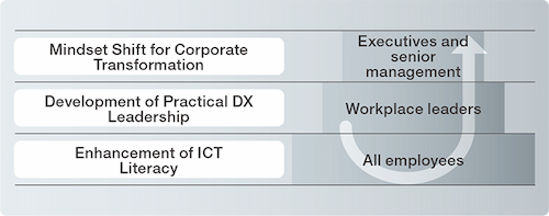 In order to improve the ICT literacy of all employees, we will continue to work for enhancement of ICT literacy for all employees, and for a mindset shift among executives and senior management, driven by the DX leaders in each workplace.